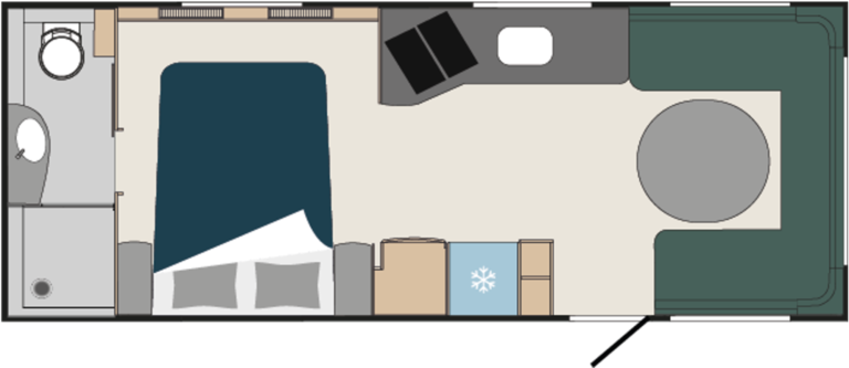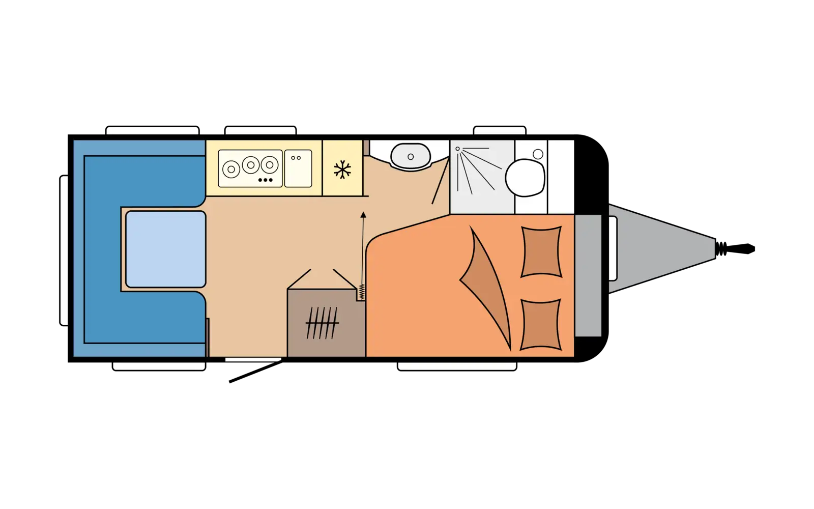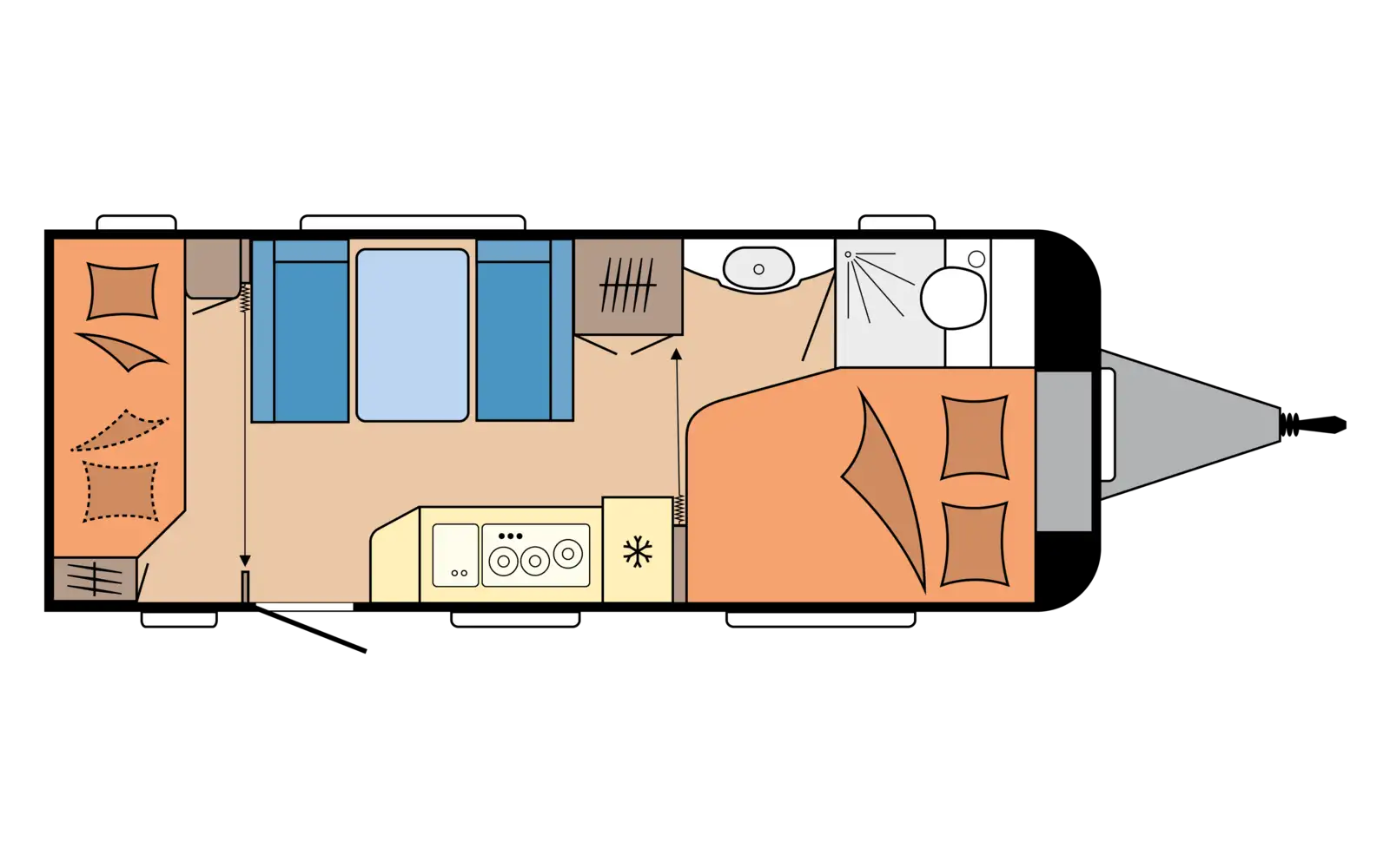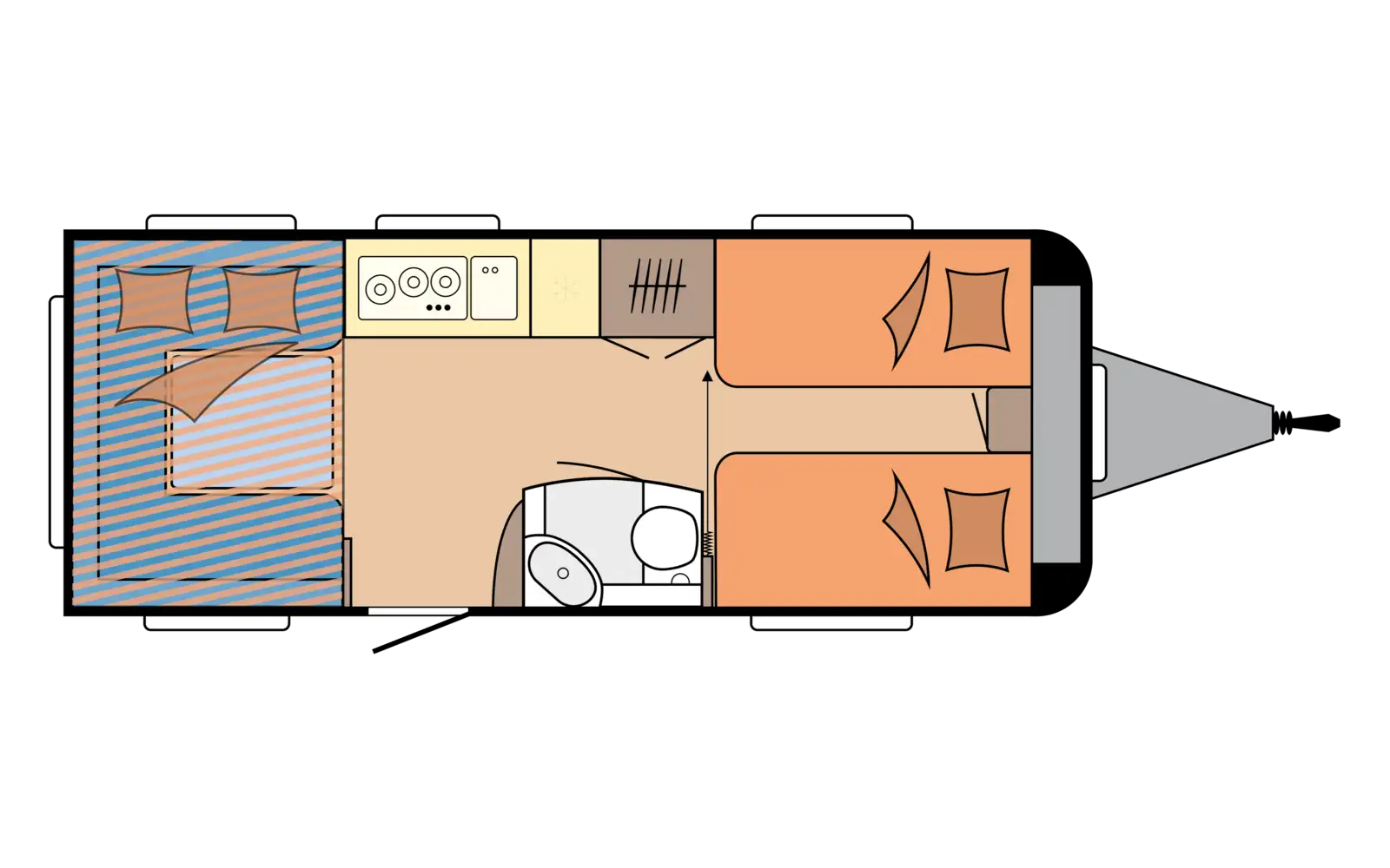 Verschiedene Grundrisse bieten Dir genau den Raum, den Du für Dein Campingabenteuer brauchst – optional mit zusätzlichem Stauraum über dem Bett.