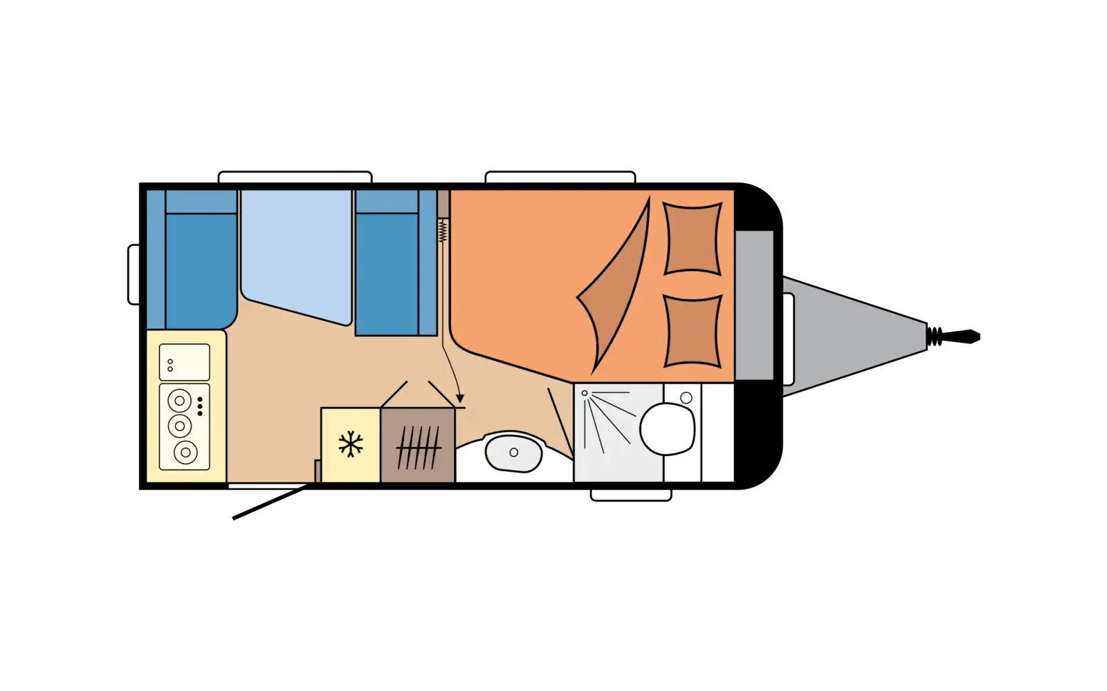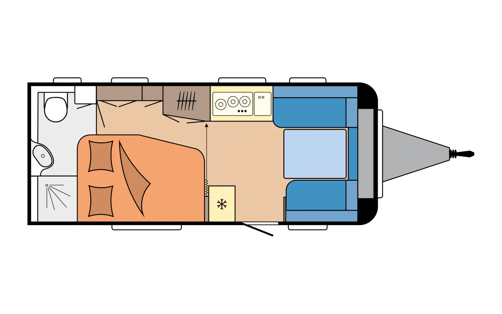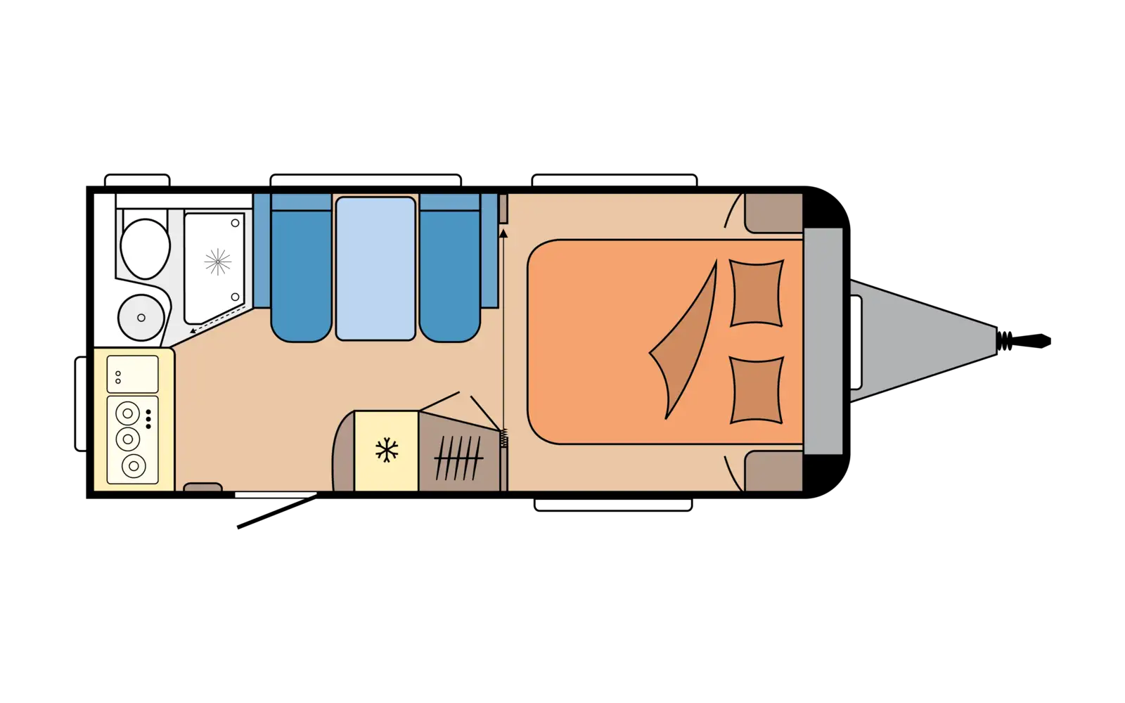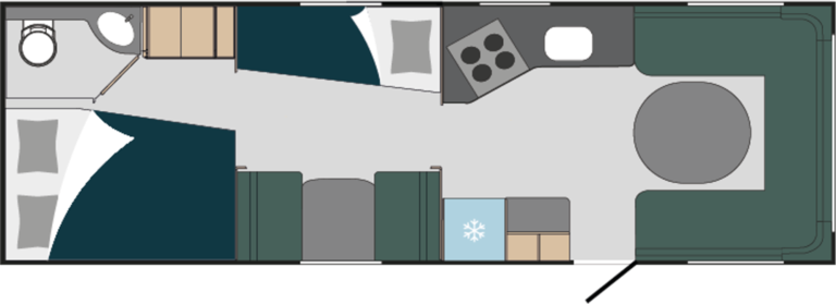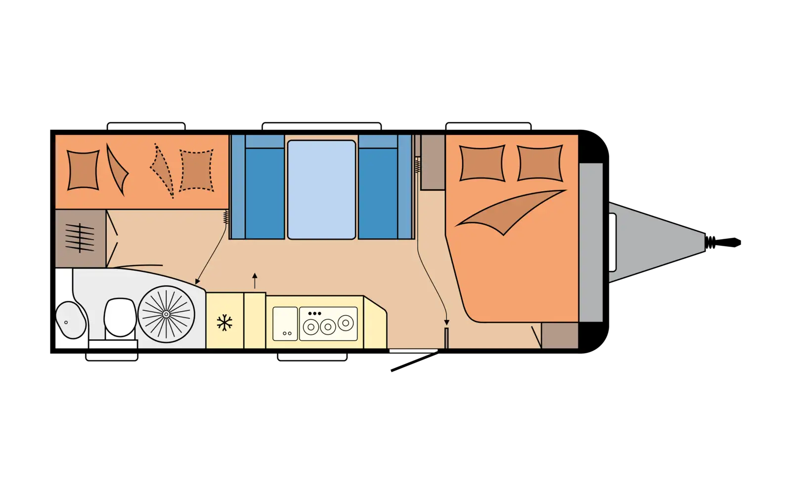Verschiedene Grundrisse bieten Dir genau den Raum, den Du für Dein Campingabenteuer brauchst – optional mit zusätzlichem Stauraum über dem Bett.