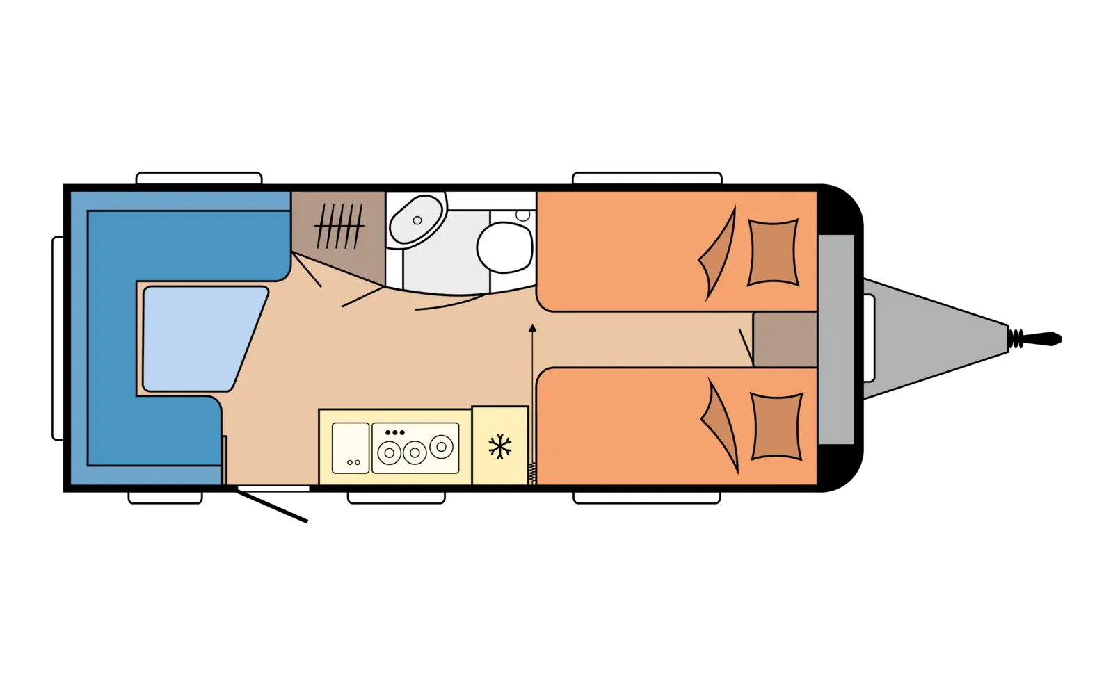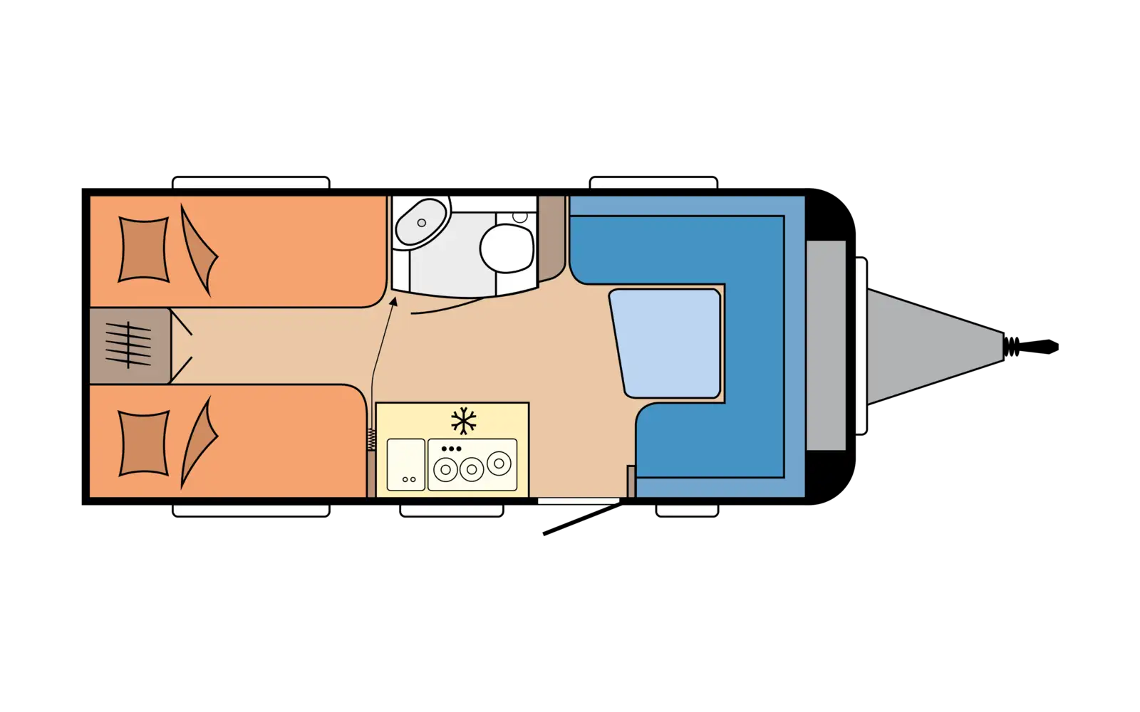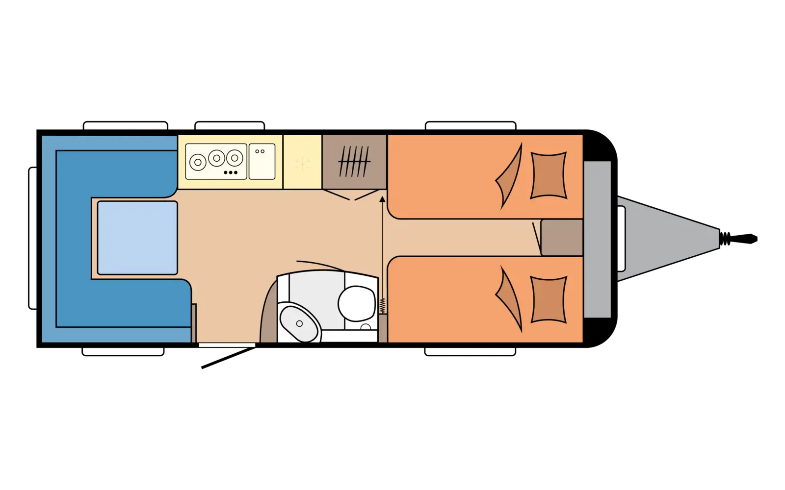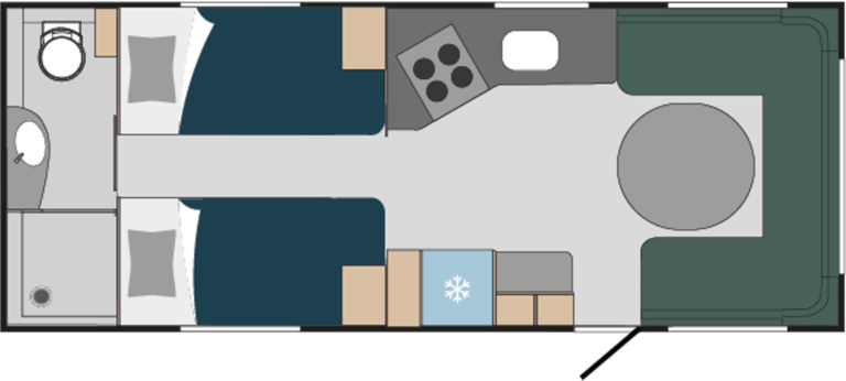Verschiedene Grundrisse bieten Dir genau den Raum, den Du für Dein Campingabenteuer brauchst – optional mit zusätzlichem Stauraum über dem Bett.